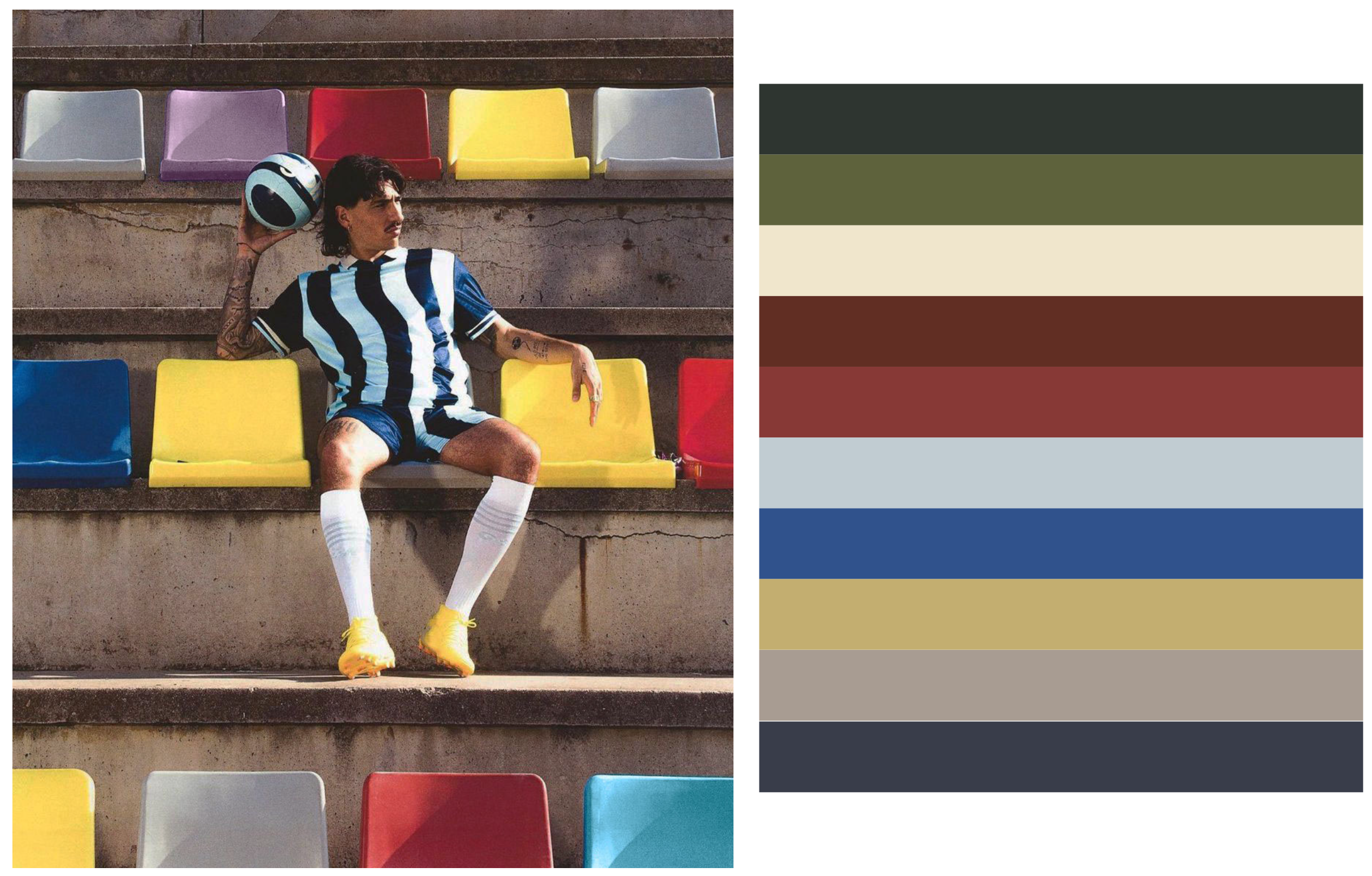 Inspired by the intersection of urban soccer culture and seasonal transitions. My approach involves extracting high contrast palettes from real world environments, blending muddy olives with electric accents to create a narrative that feels both grounded and fast.