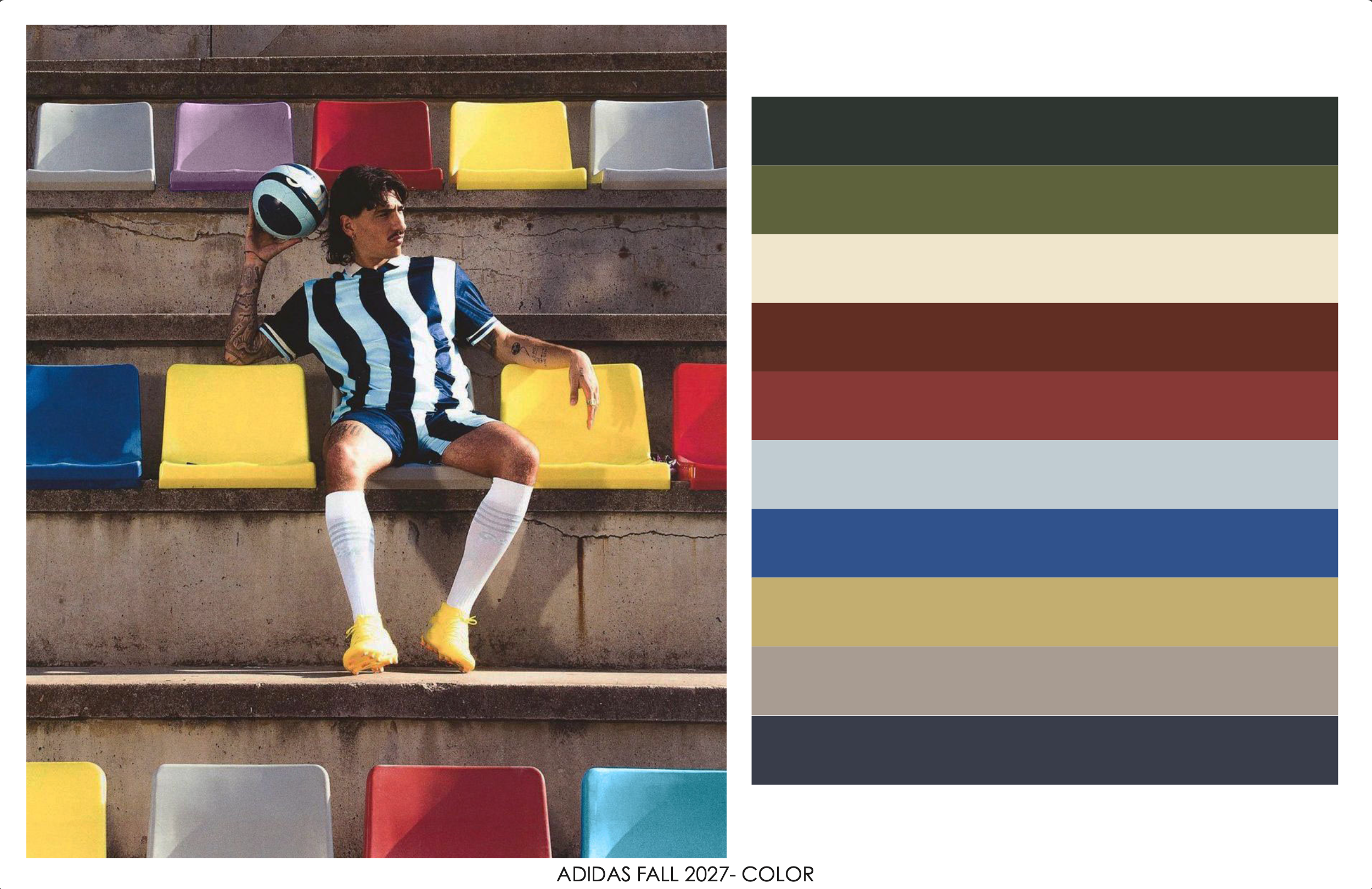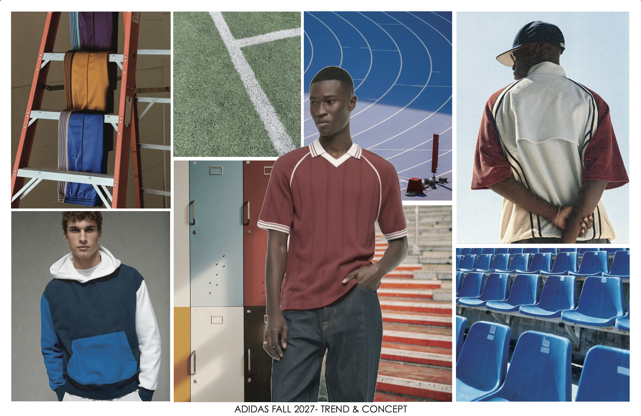 Bridging raw stadium energy and technical streetwear. Mixing saturated blues and archival reds with gritty industrial greens.